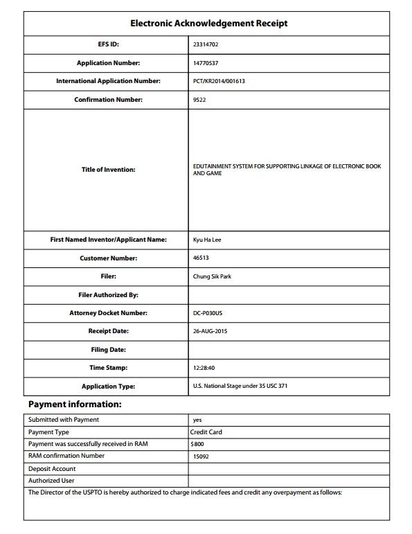 - Previous[미국/특허] DEVICE FOR PROVIDING GAME LINKED WITH ELECTRONIC BOOK 19.05.30