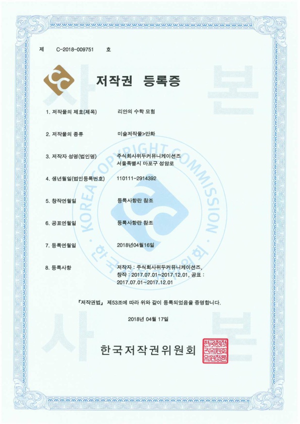 [한국/저작권] 리안의 수학 모험 페이지 정보 작성자 WeDu 댓글 0건 조회 5,624회 작성일 19-05-30 19:07 본문 2018-04-16 저작권 C-2018-009751 리안의 수학 모험 / 미술저작물>만화 List Previous[한국/저작권] 길리 19.05.30 Next[한국/저작권] 신입사원조기전력화 이러닝 콘텐츠 19.05.30