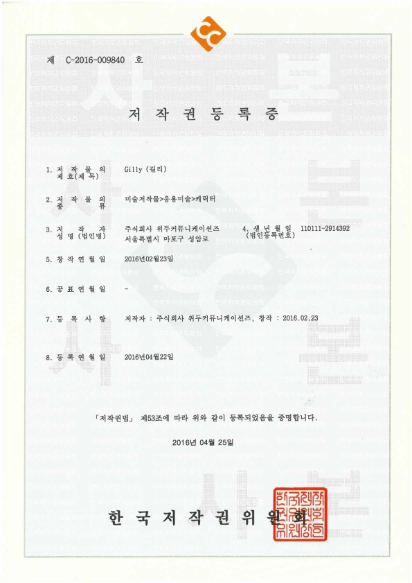 [한국/저작권] 길리 페이지 정보 작성자 WeDu 댓글 0건 조회 5,729회 작성일 19-05-30 19:07 본문 2016-04-22 저작권 C-2016-009840 길리 / 미술저작물>응용미술>캐릭터 List Previous[한국/저작권] 나무트 19.05.30 Next[한국/저작권] 리안의 수학 모험 19.05.30